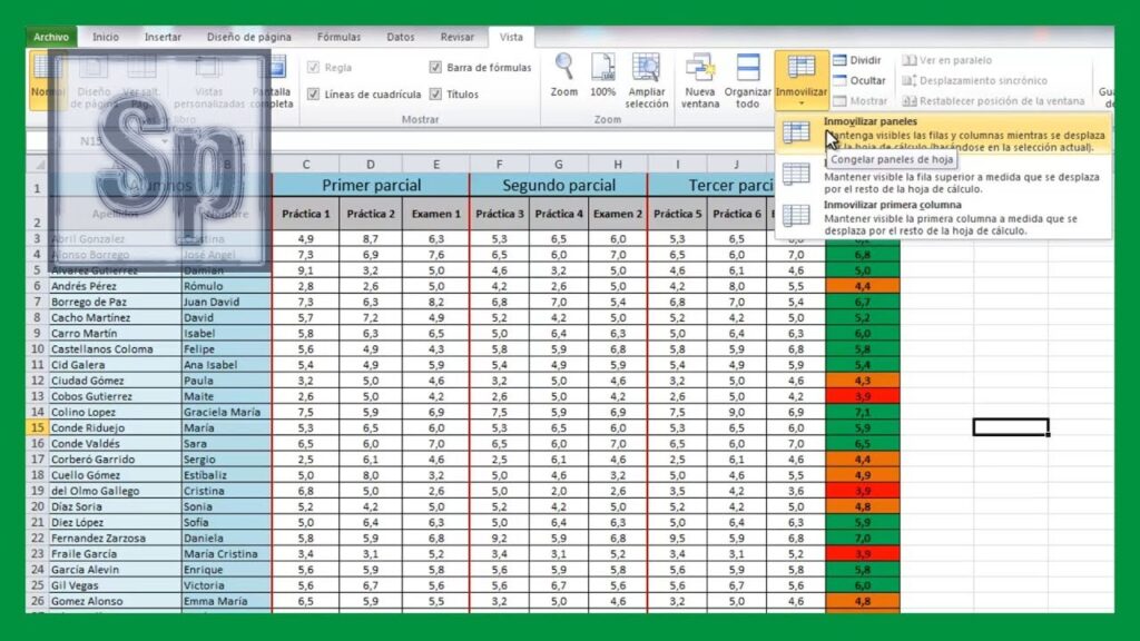 - En el grupo "Inmovilizar paneles", haz clic en "Inmovilizar paneles".